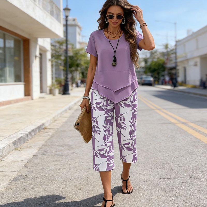 - 1 x Loungewear-Set mit Rundhals-Oberteil (Lagenlook) und Hose mit extra weitem Bein