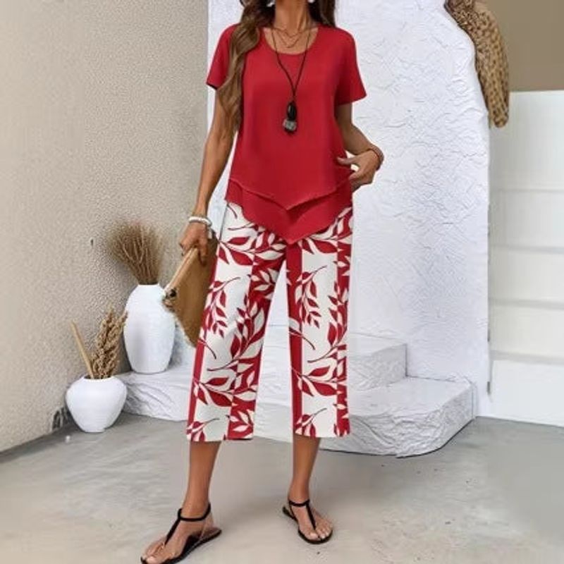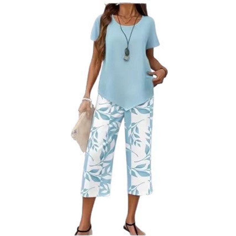 STILVOLLE BEDRUCKTE HOSE – Diese Caprihose besticht durch ein stilvolles Blattmuster im Blockdruck, das einen schönen Kontrast zu einem einfarbigen Oberteil bildet. Dieses auffällige Design verleiht Ihrem Outfit einen modischen Touch.