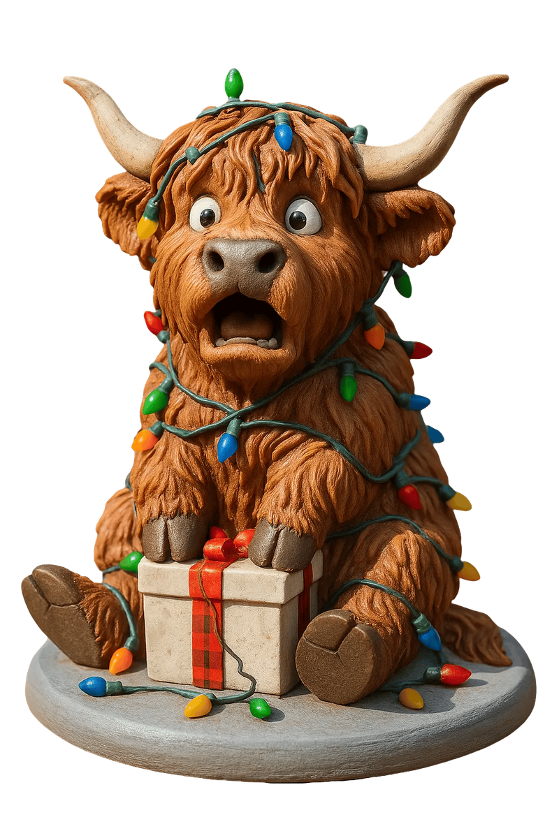 🎁Każdy dzień przynosi nową radość – krowy rasy Highland ubrane na Boże Narodzenie, Halloween, a nawet grające na dudach, wykonane z dbałością o szczegóły, aby wywołać śmiech i radość.
