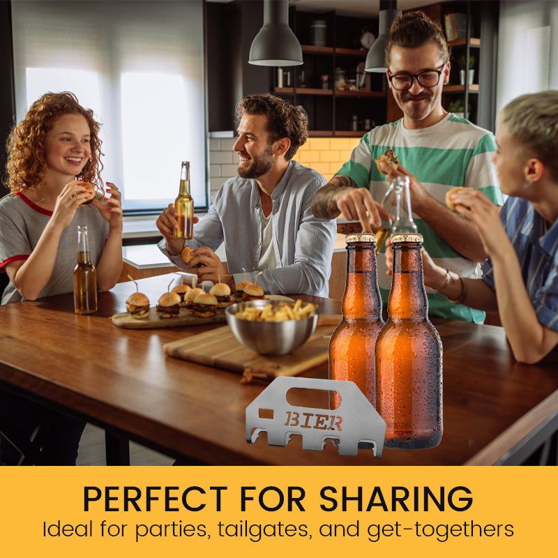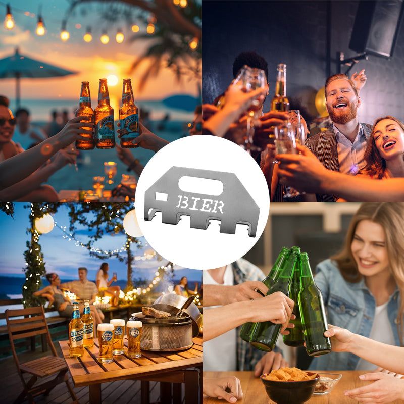 Haben Sie es satt, ein Bier nach dem anderen zu öffnen, wenn die Stimmung ausgelassen ist? Unser innovativer Quad Beer Opener & Carrier ist hier, um Ihr Getränkeerlebnis zu revolutionieren! Mit diesem genialen Werkzeug aus langlebigem Edelstahl (oder einem anderen robusten Material) können Sie bis zu vier Flaschen gleichzeitig mit einer schnellen, befriedigenden Bewegung öffnen.